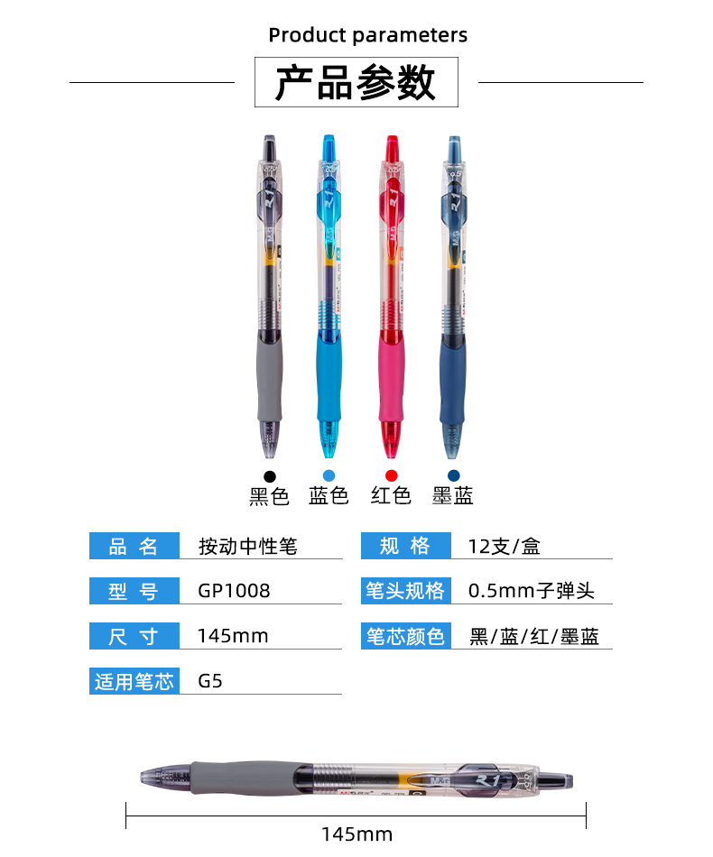 商品名称:晨光(M&G)文具GP1008/0.5mm中性笔 经典按动子弹头签字笔 学生/办公用水笔 12支/盒